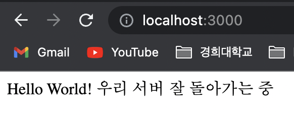 res.send("Hello World! 우리 서버 잘 돌아가는 중");