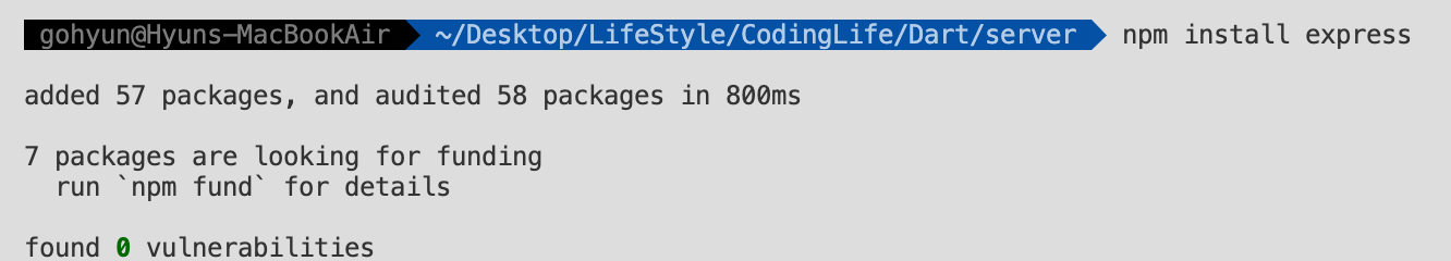 위와 같이 실행되고, 디렉토리에 node-modules, package.json 등 파일이 생긴다.